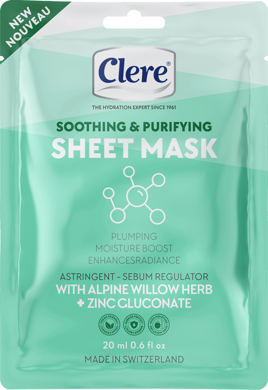 Calm and purify your skin with our Clere Soothing Sheet Mask, infused with Alpine Willow Herb and Zinc Gluconate. This potent combination helps to reduce redness and irritation, while purifying the skin and minimizing pores. Perfect for sensitive skin, this mask leaves your complexion feeling calm, balanced, and refreshed.